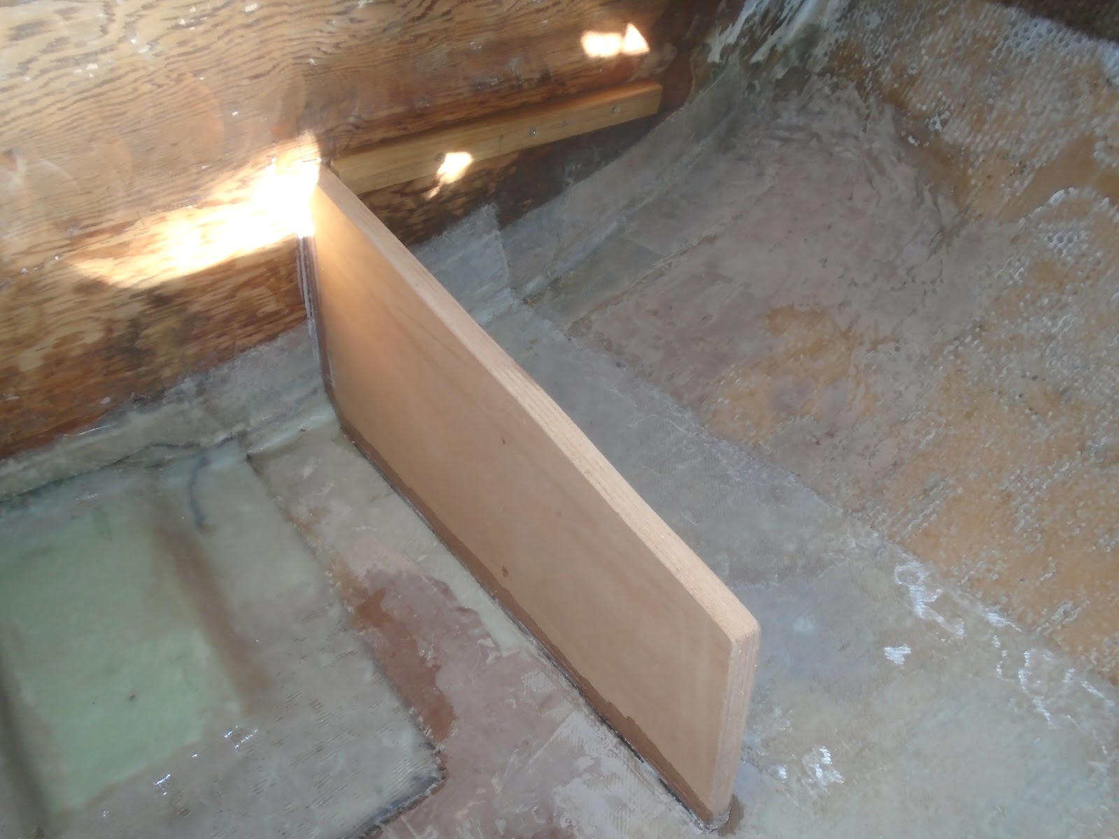 I cleaned up the lazarette by both vacuuming and solvent-washing all surfaces. With the area prepped for further work, I broke out some cardboard and began templating the shelf panels. Using a compass after cutting a rough shape of the outboard edge of the hull, I transferred the contour onto the cardboard and cut the excess off.